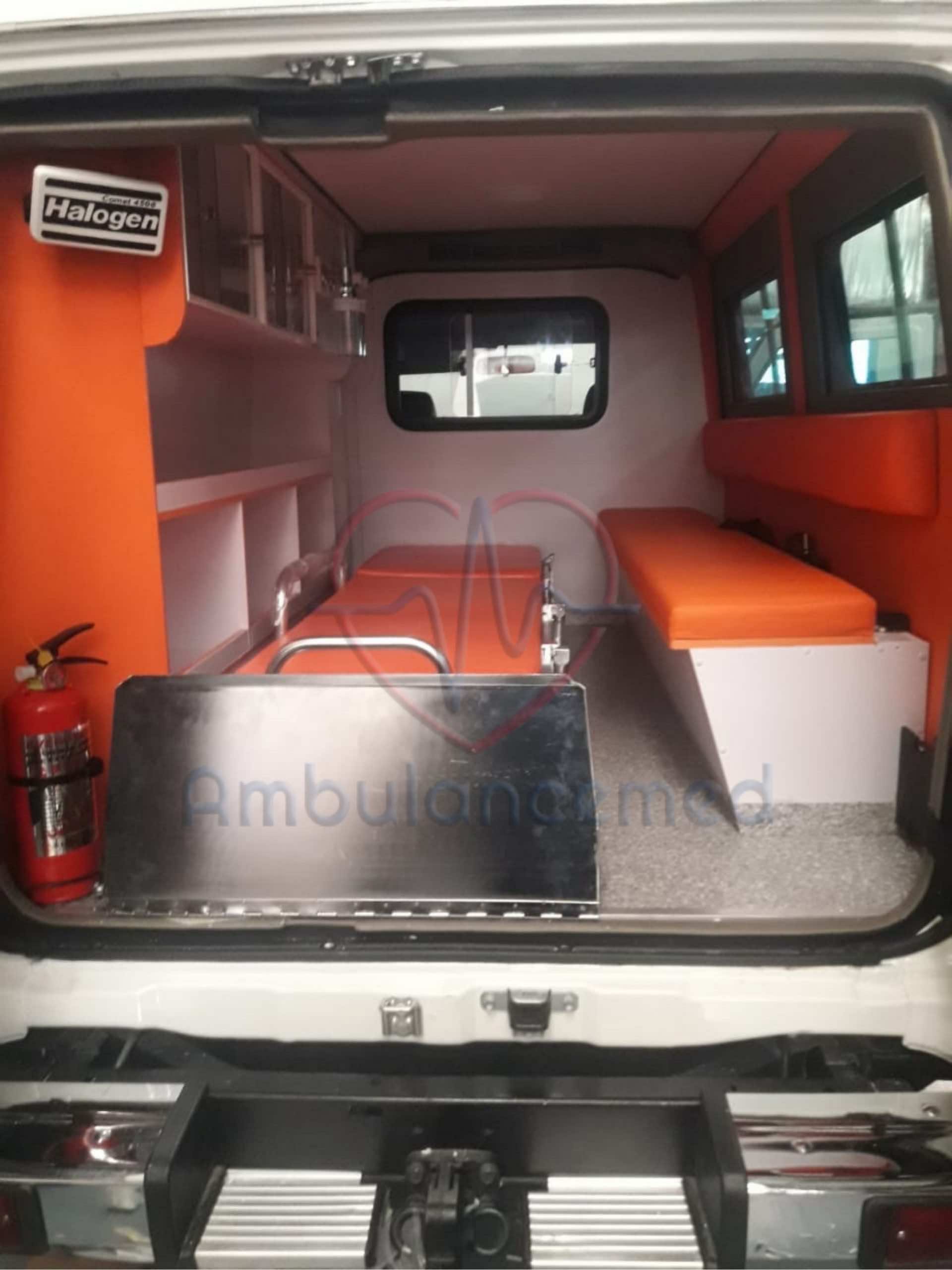 The bottom is covered with one-piece MDF material on the ambulance armored surface. This covering’s over is covered with epoxy resin material which is antibacterial and be washed.