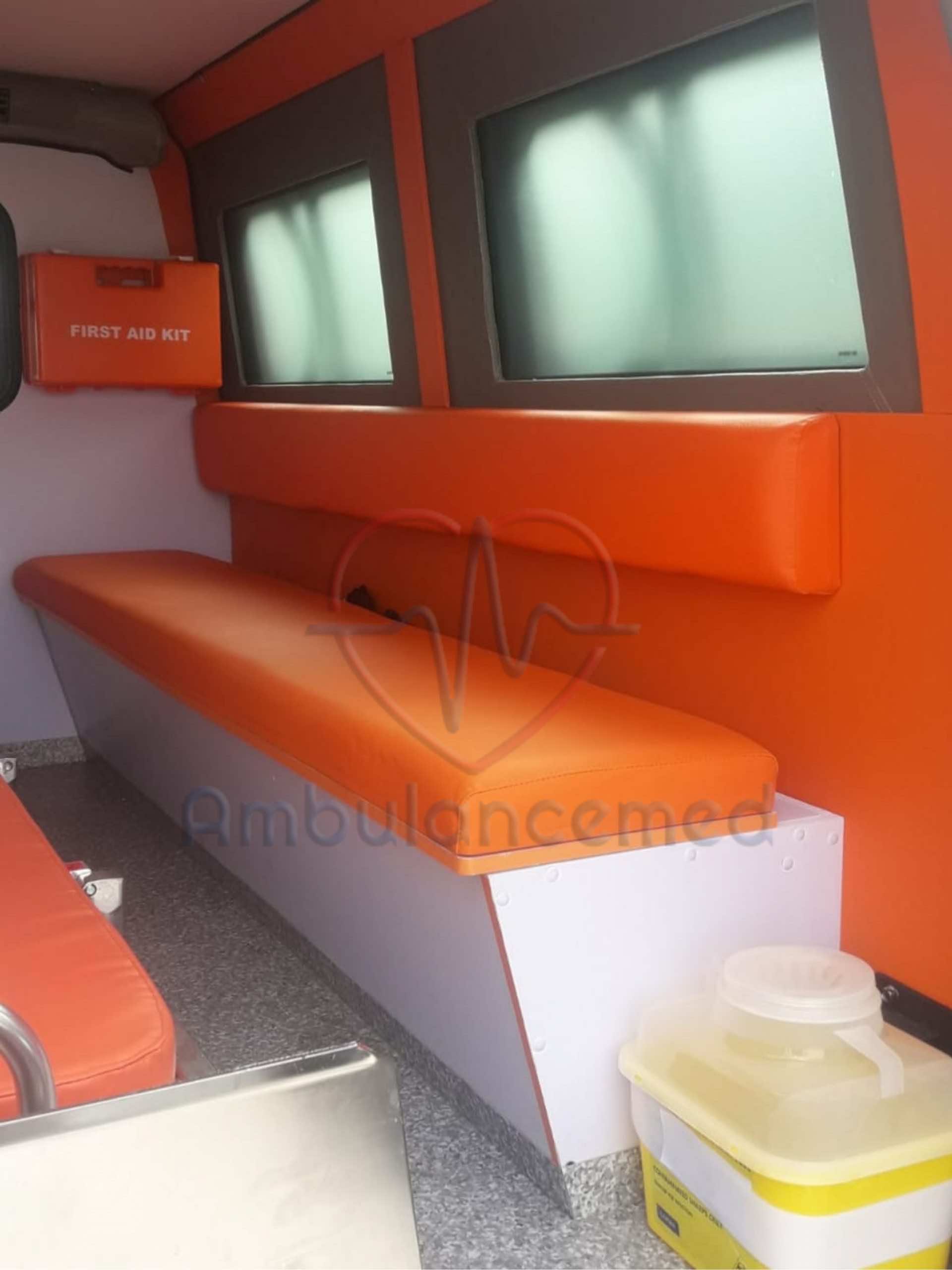 The ambulances’ glasses are completely armored. Wheels are filled with a filling material. It is able to head 30 kilometers after an explosion. There are a main stretcher and the main stretcher platform. There is a companion sitting group for 3 individuals based on the right side of the patient cabin. Under the companion sitting group, there is a decent area in order to store the materials. There are a cupboard and an oxygen system on the left side of the patient cabin; defibrillator, ventilator, and a vacuum aspirator on the patient’s head part.