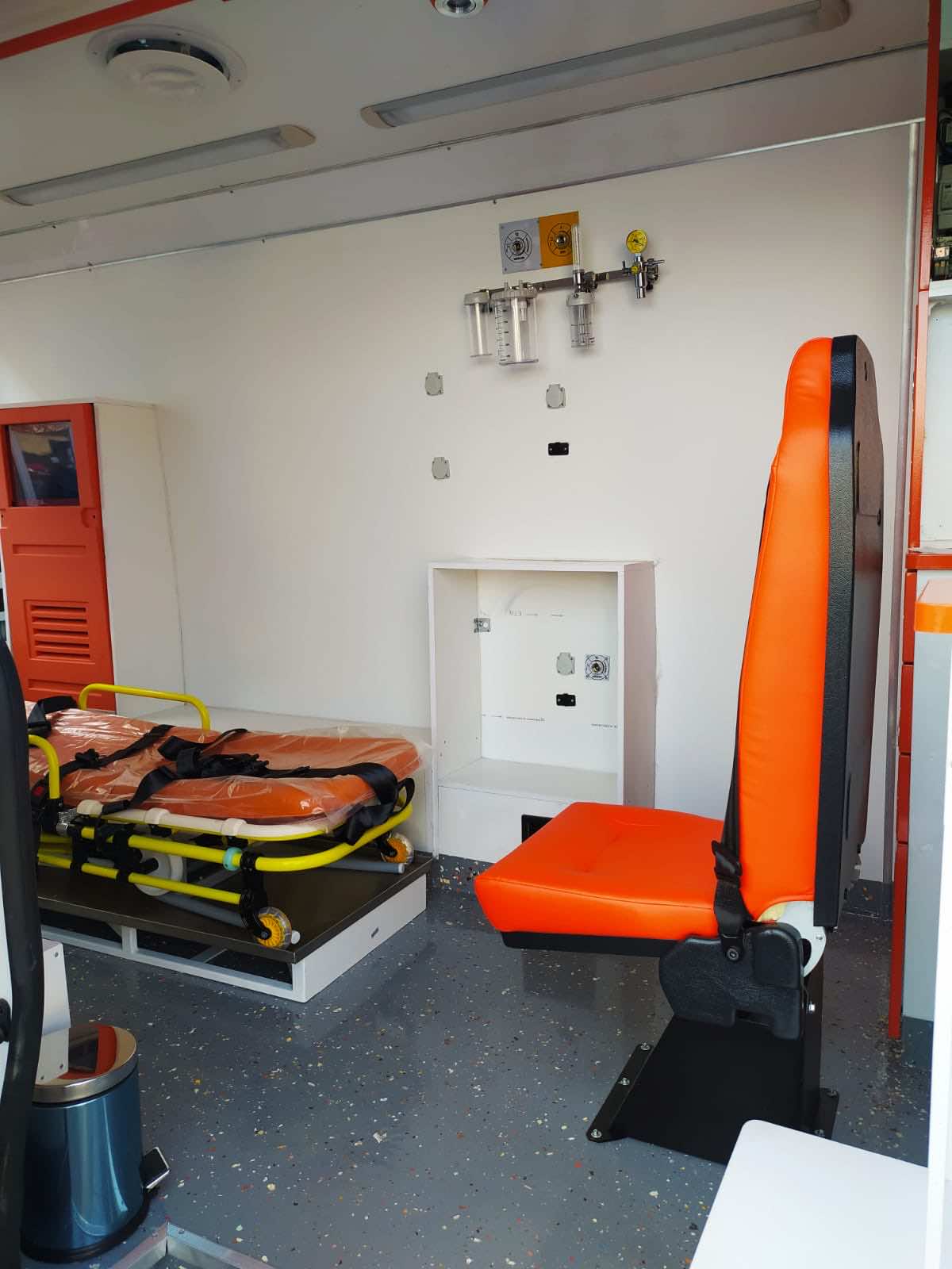 There are two seats in the Hyundai ambulance patient cabin, the seats used are in accordance with en1789 norms and models that comply with the 10G Crash test certificate.