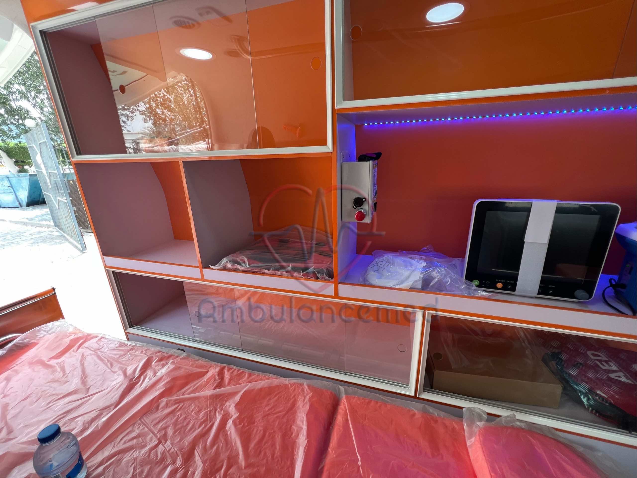 When designing the left side of the Toyota Hiace ambulance, sufficient use space for ambulance officers was taken into account, as well as special places were designed for easy access and use of medical devices. Our cabinets manufactured as storage space in Toyota Hiace patient transport Ambulance are manufactured as foam board.